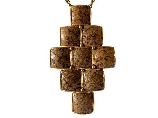WILLIAM DE LILLO Modernist Gold Snakeskin Pendant Necklace