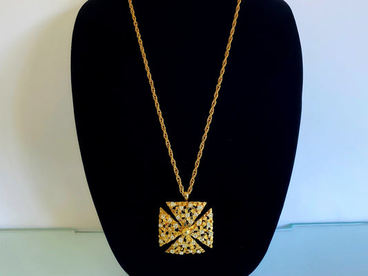 1950s MARCEL BOUCHER Gold-Plated Maltese Cross Necklace/Brooch