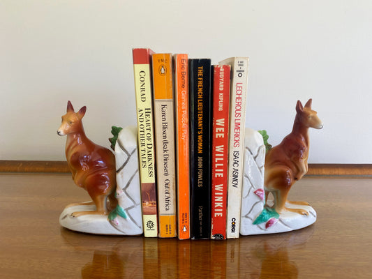 1950s Australian Hand-Painted Pottery Kangaroo Bookends | Rare!