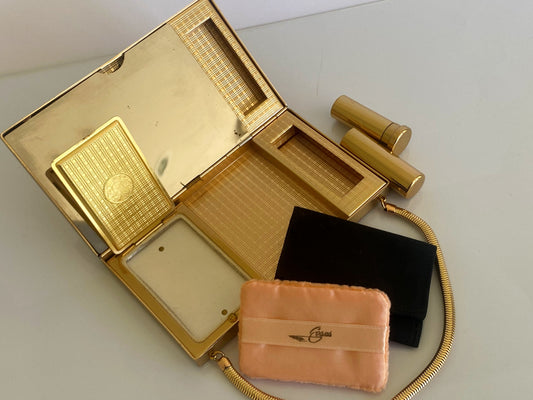 1957 EVANS Gold-Toned Mini Makeup Clutch Purse | Original Box & Tag