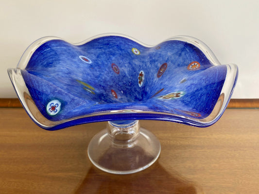 Blue MURANO Freeform Art Glass Centerpiece Bowl | Millefiori Accents